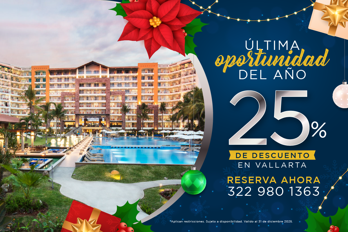 Aprovecha 25% de descuento y asegura desde hoy tus vacaciones en Krystal Grand Nuevo Vallarta. Disfruta al máximo este precio especial y prepárate para vivir Vallarta como se debe en 2026: playa, descanso y momentos inolvidables.