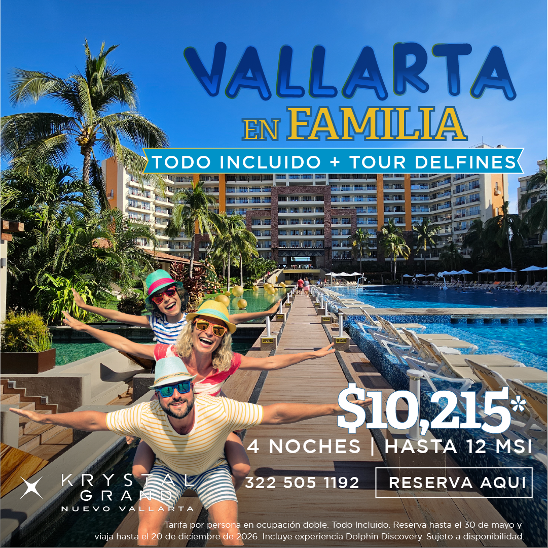 Viaja a Krystal Grand Nuevo Vallarta y vive unas vacaciones familiares llenas de diversión. Disfruta nuestro plan Todo Incluido y aprovecha este paquete especial que incluye la experiencia Dolphin Discovery, perfecta para grandes y pequeños. Más que un viaje, es una experiencia para compartir, reír y crear recuerdos inolvidables.